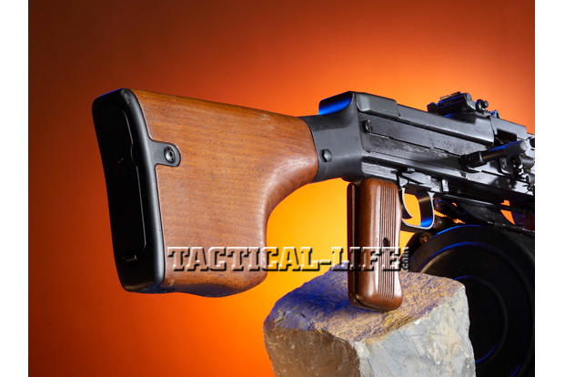 I found the greatest problem when firing from the kneeling position was that the wooden forearm was so short that the drum pressed against my forearm adversely affecting control and accuracy. The RPD is at its best when firing prone, as ergonomics are good and the stock is very well designed to lock into the shoulder comfortably.