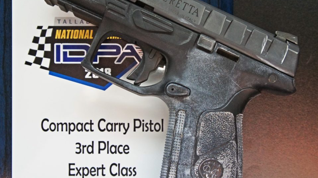 All of my APX pistols were upgraded with Beretta’s Competition Firing Pin spring, which reduces the trigger pull by about half a pound. The design of the legacy APX trigger shoots in well, so now after 1955 rounds the trigger is a nice 4.5 pounds. Pulling the trigger gives you a short take-up, and a clean break. An interesting note on the recently released APX A1 full size: it incorporates the Competition Firing Pin spring from the factory, so the gun starts with what I consider a mandatory upgrade for the Beretta APX Centurion as well as the other legacy APX guns.