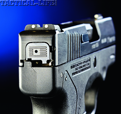 The only external indications of the gun’s condition are the action of the automatic striker block, which rises up though an opening in the top of the slide when the trigger is drawn to the rear, and a loaded chamber indicator, which is almost too subtle to notice. When a round is chambered the extractor protrudes just slightly outward from the slide. Other than that, the gun has no obvious tells; the trigger position appears the same (fully forward, toggle extended) whether the slide has been cycled or not, while a Glock, for example, has two clearly different trigger positions between “at the ready” and “discharged.” The Nano also has no external (manual) safety or even a slide release lever. The design is as uncomplicated as possible. All it takes to strip the first round from a magazine on the reload is pulling the slide slightly to the rear and letting go, which basically makes it ambidextrous. In a pinch (one-handed) the slide can also be released by lightly pushing its front edge against any hard surface and you’re good to go. There is also an easily depressed magazine release that is reversible, so southpaws don’t have to go wanting, and the Nano does not use a magazine disconnect—it will discharge a chambered round with the magazine removed.
