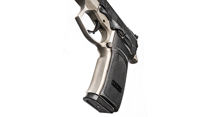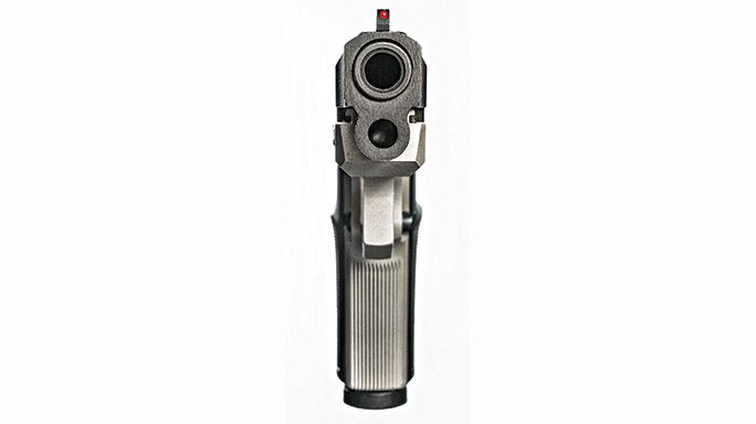 The 33.9-ounce weight of this palm- filling handgun feels solid, and the metal frame contributes to a pretty decent unloaded balance—a big plus for those who extensively dry fire or shoot in disciplines where magazines are downloaded. In plate rack drills with only six rounds in each magazine, there’s a noticeable improvement in balance compared to many of today’s polymer-framed guns.