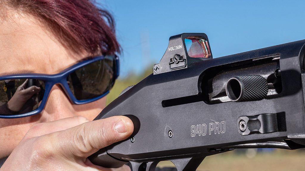 I will take a moment to go off script and talk about optics on shotguns. While it is not a completely foreign concept, Mossberg’s milling of the 940 Pro Tactical to support an optic is serious business. There is ultimately a grumpy old shooter out there that swears they will only shoot bead sights on a shotgun. That is fine, but if you have the opportunity to run an optic on a shotgun you need to do it. It is the future, and technology is ready to meet the challenge. It is fast and has all the optic benefits we get on other platforms.