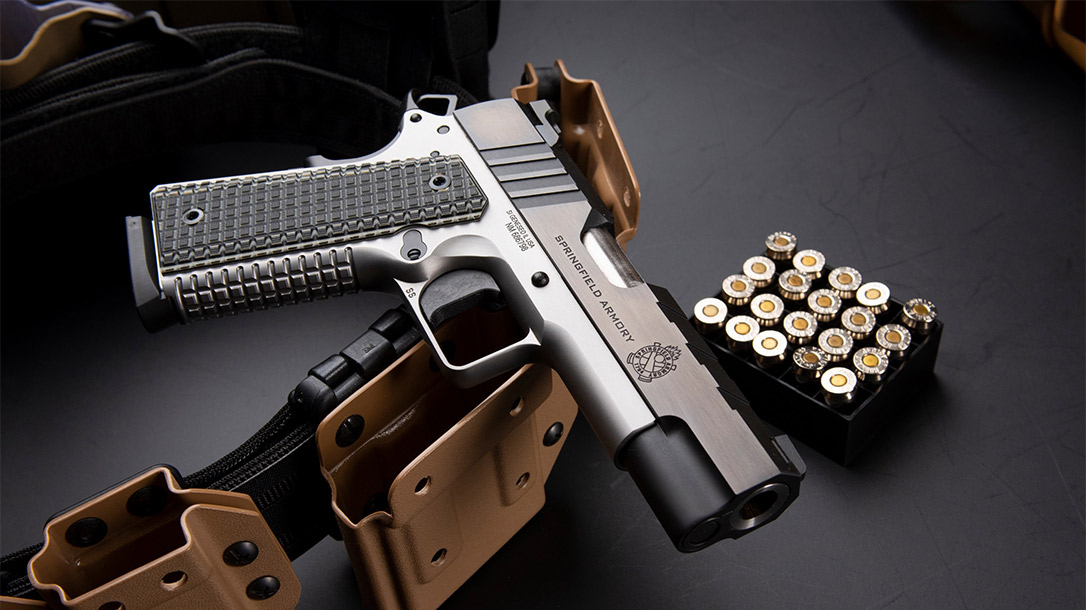 Chambered in .45 ACP, 10mm, .40 S&W, .38 Super, or 9mm, it has a capacity of 8+1 in .45 ACP.