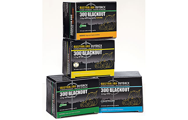Australian Outback offers four 300 BLK loads, from a zippy 125-grain hunting round up to a subsonic 220-grain match round.