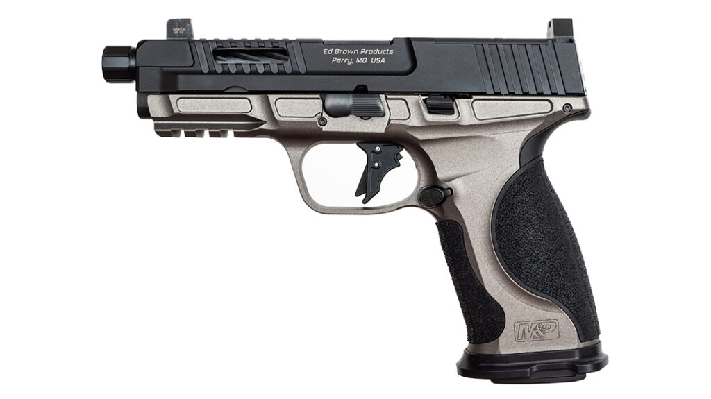 Another pricey pistol in our lineup is the Ed Brown MP-Metal-F1, which has a starting price of $2,295. The folks at Ed Brown Products do for the Smith M&P series what Zev did for Glock pistols. Starting with S&W’s base M&P 2.0 Metal pistol, the craftsmen at Ed Brown add their touch by machining and installing a number of custom components including the slide, extractor, accuracy rail block, barrel, backplate, mag well and even the frame pins. This MP-Metal-F1 isn’t just about a new slide and aftermarket trigger; a lot of work goes into getting one out the door.