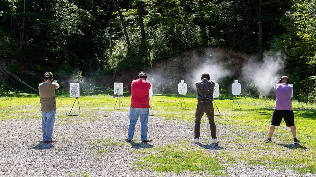 Our tests began in the middle of August. Of course, our first test day was a humid 95 degrees under a blazing sun. Isn’t that always the way? We were going to go through a lot of water as each of us shot and ranked each pistol according to nine different criteria—aesthetics, ergonomics, sights, trigger control, recoil control, reloading ease, accuracy, reliability, and value/price point.