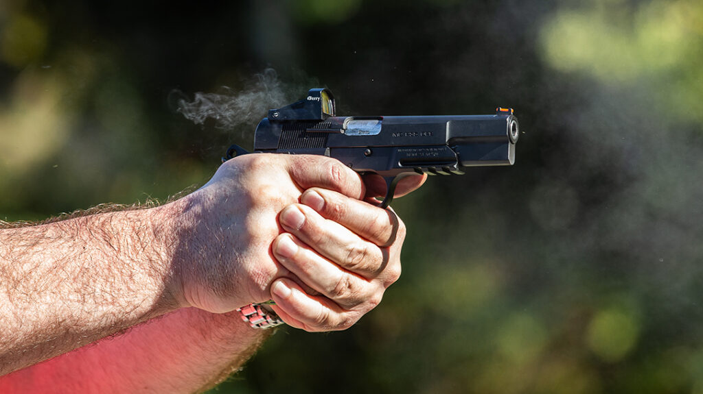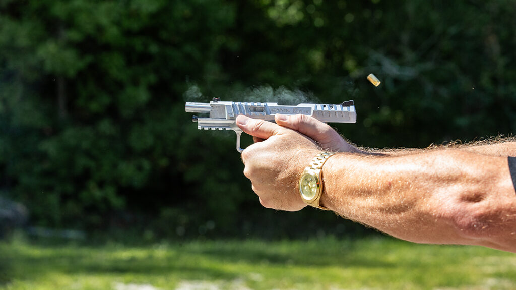 However, if you’re not looking to the past and want something a bit more action-packed, the next couple of pistols should fit the bill quite nicely. The new Canik Rival S is an all-steel competition pistol that was designed to reduce felt recoil and muzzle flip in comparison to the company’s polymer-framed Rival. That all-steel construction did the trick, giving the Rival S a heft of close to 43 ounces to soak up all but the most abusive recoil.