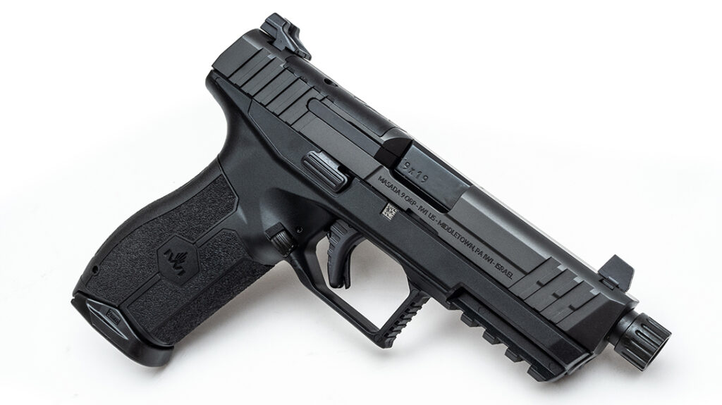 The IWI Masada Tactical turned a few heads during our evaluation not only for its value-packed setup, but also for its sheer performance. The Masada Tactical offers a boatload of features, with an MSRP of $480. It comes with suppressor-height sights, a 4.7-inch threaded barrel and an optics cut in the slide. The package also includes four adapter plates. The Masada’s glass-reinforced polymer frame includes full-ambi controls for the slide stop and the magazine releases. The modular trigger assembly quickly removes for efficient and thorough maintenance.