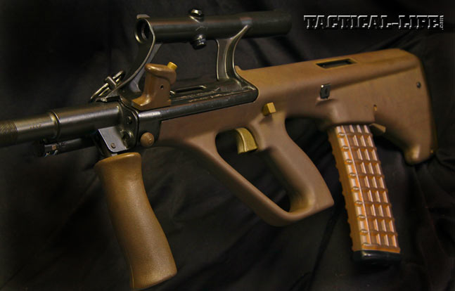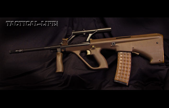 Steyr Arms has been building high-quality firearms since the 14th century. For today’s black rifle shopper, it offers one of the most accurate sniper systems available. While Steyr’s SSG was one of the first military bolt-action rifles to use space-age materials, the 5.56mm NATO “Army Universal Gun,” or AUG, was the first truly space-age-looking weapon. This radical bullpup (the action is located behind the fire control mechanism) has a telescopic sight built into the receiver. It also has a flip-down foregrip; a skinny, user-removable-without-tools barrel; and clear plastic magazines, no one in my shooting circles had ever seen a battle rifle like it.