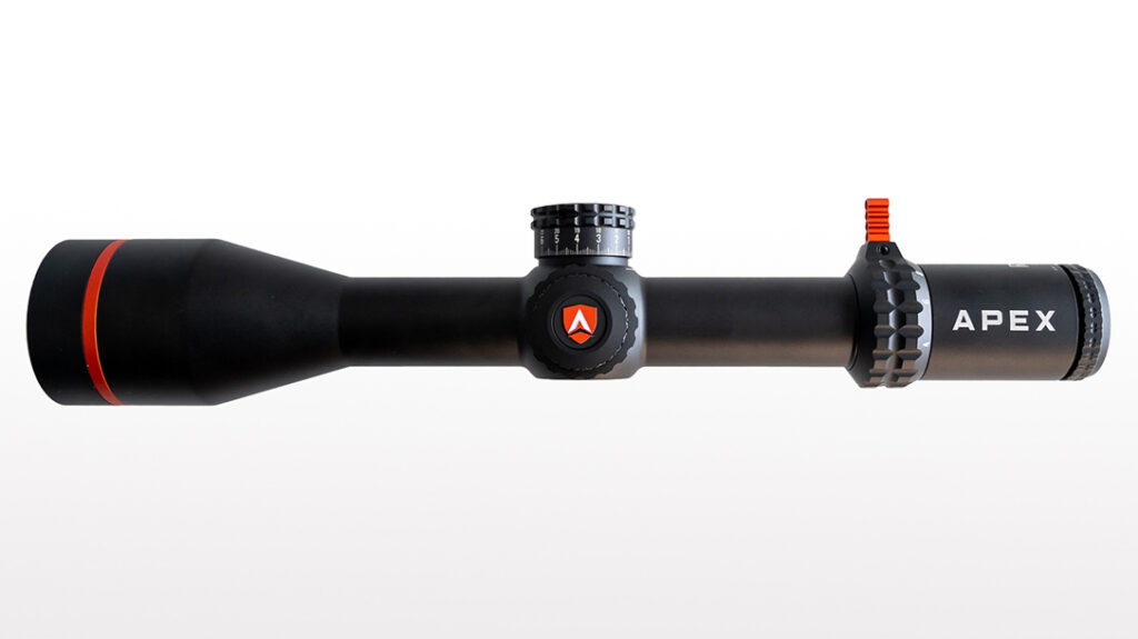 With a 34mm tube milled from a solid block of 6061-T6 aircraft grade aluminum, the Apex Optics Rival X 4-32×56 FFP scope is not easily dismissed. Stainless steel internal components for positive clicks, 10 and 15 MIL per turn elevation turret options, zeros stop, 2-turn indicator, 15 yard to infinity parallax adjustment, 32-mil elevation adjustment, 20-mil horizontal adjustment, six levels of illumination, first focal plane, and Japanese glass.