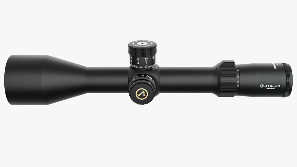 Athlon Optics upgraded the Cronus BTR to stainless steel internals for more solid, tactile clicks. The Cronus BTR 4.5-29×56 has a 34mm tube, first focal plane, UHD low dispersion glass, precision zero stop, illuminated etched glass reticle, waterproof, XPL coating for protection from dirt and scratches, and a choice of three reticles: two in MILRAD and one in MOA.