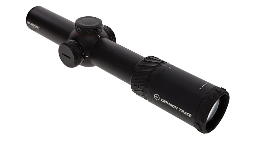 Crimson Trace redesigned its Hardline 1-10 scope with three reticles. It has a 34mm tube, second focal plane, .1 MIL clicks, shockproof to MIL-STD-810G test protocol, 88% light transmission, waterproof to IPX7 standards, has fully-coated optics, and illuminated glass etched reticles. These work for everything from CQB to backyard plinking.