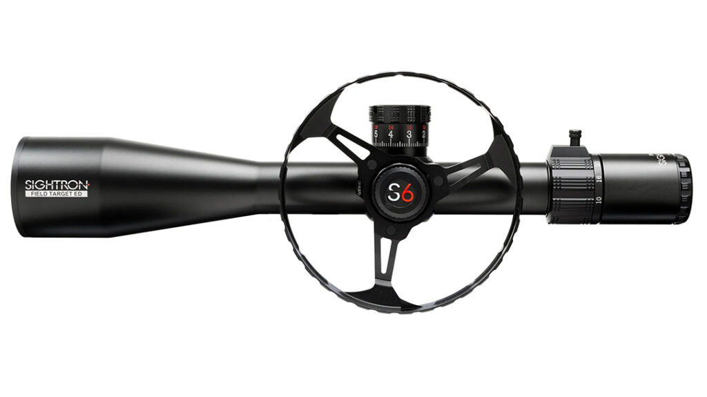 Available this summer will be Sightron’s S6 10-60×56 ED Field Target. It fetures a 34mm tube, Japanese extra low dispersion (ED) glass, Zact-7 Revcoat Plus lens coatings for clarity, 11 settings of reticle illumination, an etched reticle in the second focal plane, waterproof to IPX7 standards and comes 1,000G rated shockproof. The parallax wheel allows adjustment from 9 to 300 yards and the large parallax wheel stays on via magnet, making it easily removable for transport.