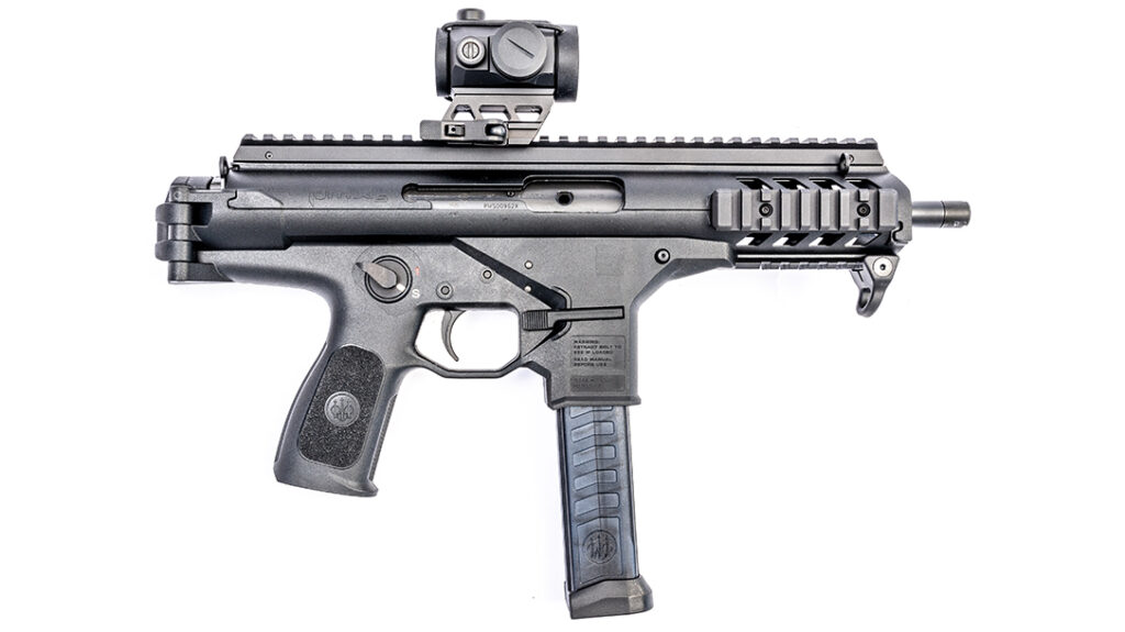 After years of refinement of the PMX for military and law enforcement agencies around the globe, Beretta translated the PMX into a semi-automatic pistol variant for civilian and modern sporting applications. The PMXs is a highly reliable and proven direct blow-back design, coupled with modern polymer components to enhance durability and save weight. Packed with versatile features such as fully ambidextrous control for user adaptability, multiple attachment points such as QD and sling mounts, and a ½”-28 tpi threaded barrel for accepting 9mm muzzle devices, it sports a nice 30-round magazine and has a very “sub-gun” feel to it. It is everything we would expect from the good folks at Beretta. (beretta.com)