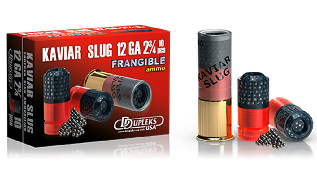 Ideal for personal defense, this fragmenting 12-gauge slug offers up reliable and trustworthy knock-down performance, all while minimizing the risk of overpenetration and ricochet. This unique design also lends itself as a safer option when engaging steel targets. Suitable for rifled and smoothbore shotgun barrels. (ddupleks-usa.com)