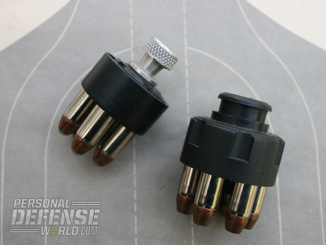 Over the years, I have used speedloaders from both HKS and Safariland, with both brands proving entirely satisfactory. With the HKS speedloaders, the user inserts the cartridges into the cylinder and twists a knob to release them. HKS currently markets the widest variety of speedloaders—a big plus if your revolver is something other than a small or medium frame .38 Special/.357 Magnum.