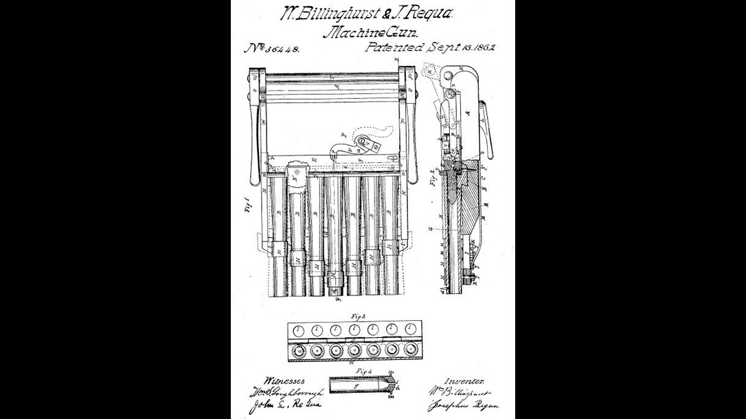 Even though Gatling’s design proved to be very successful on the field of battle, his gun wasn’t the first to bear the title of “machine gun.” Gatling’s design, patented in November of 1862, was preceded by the Billinghurst-Requa design, which was patented two months before the Gatling gun. The fact that neither design fits the modern requirements of a machine gun is irrelevant; at this point in time, the relatively new term was applied rather judiciously.