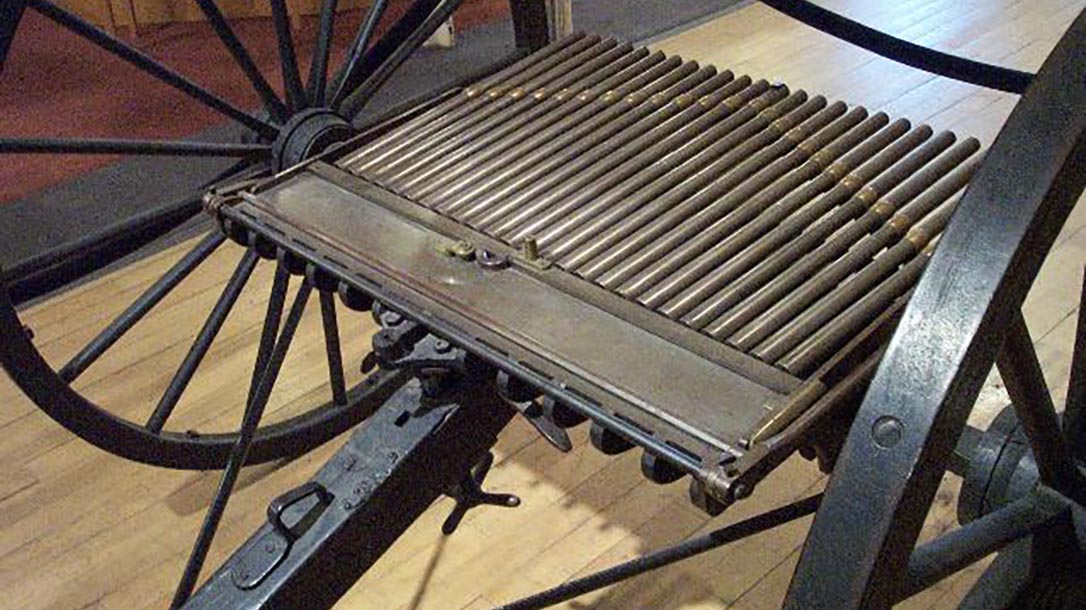 Applying the same advancements in repeating firepower to larger gun batteries was next in line for development. Richard Gatling’s invention was the first firearm to become synonymous with the term “machine gun,” despite the fact that its manual operation means it does not fit the technical definition of a machine gun as we know it today.