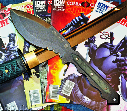 The knife in question is called CUMA TAK-RI and is made by TOPS knives. The special interest in this knife was the fact that it is featured in a comic book published by IDW (Idea + Design Works) entitled “Cobra Civil War: Snake Eyes.” In issue #2 the CUMA TAK-RI is shown, along with a sword, being used to dispatch an enemy of Snake Eyes.