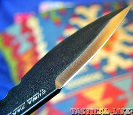 The CUMA TAK-RI, when wheeled around and ran through tactical defensive and offensive moves, performs very well. I would consider this knife to be toes-to-toes and nose-to-nose direct contact knife. In other words, when things have gone to hell and they are coming over the wire and you don’t have time to reload, out would come the CUMA TAK-RI.