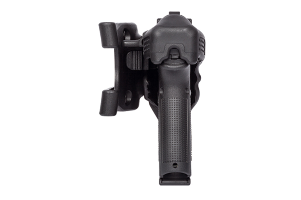 Complete with a thumb-activated release for single-phase operation, this brand new holster is capable of accommodating several under-barrel pistol lights, including the Streamlight TLR-1 and TLR-2, the SureFire X300 and X300 Ultra. According to the press release, the holster’s patent-pending retention system features a thumb-activated Auto Lock and Pivot Guard, along with a passive retention detent screw. The holster engages the ejection port when holster and does not let go until released. In addition, the Pivot Guard is open for one-handed re-holstering and prevents the end user from being locked out of the holster.
