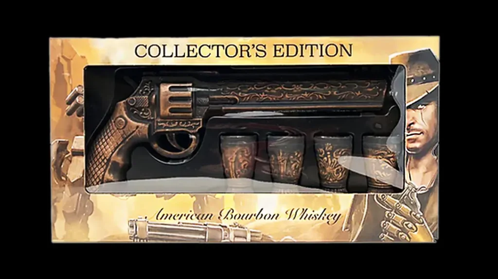While we are on the theme of the Wild West, we need to include The Wyatt Earp American single malt whiskey. This is a tribute to Wyatt Earp, a legendary figure of the Wild West. Earp wasn’t your typical gunslinger; while accounts of his exploits may be embroidered with myth, there’s no denying his courage, loyalty, and unwavering spirit. This commemorative American single-malt whiskey pays tribute to Wyatt Earp for his bravery. The eye-catching part of this offering is the copy of the bottle that replicates a revolver cylinder complete with six rounds.