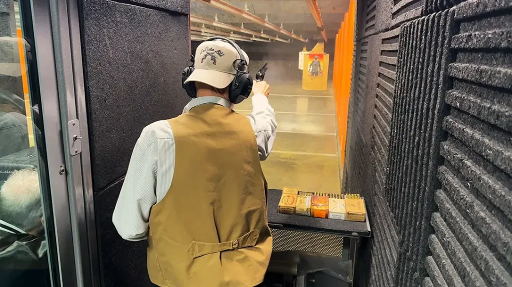 I also like the sights. The front sight is flat-faced towards the shooter and 0.10-in. wide, making it easy to see in the square-notch rear sight. The Bounty Hunter is also heavy, as I mentioned earlier, so this 71-year-old couldn’t hold it out and steady for very long. One other note, at CAS matches, you load your firearms at a loading table just before you shoot. When your revolver(s) is/are loaded, you hold it/them up so the cowpoke manning the loading table can see that the chamber under the hammer is empty.