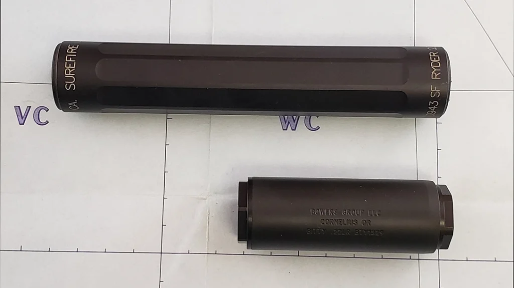 I started with the Beretta 71 and shot it with the SureFire Ryder, and then the Bitty using the CCI high velocity Clean-22, then the subsonic load. While Bowers tests with standard velocity loads, both cans produce hearing safe levels with the high velocity loads and the subsonics were down right quiet. While neither are movie quiet, you still get a crack, the sound of the .22 rounds ringingsteel targets overwhelmed the report of the sub sonic loads. The Beretta cycled the high velocity and sub sonic loads fine with both suppressors.