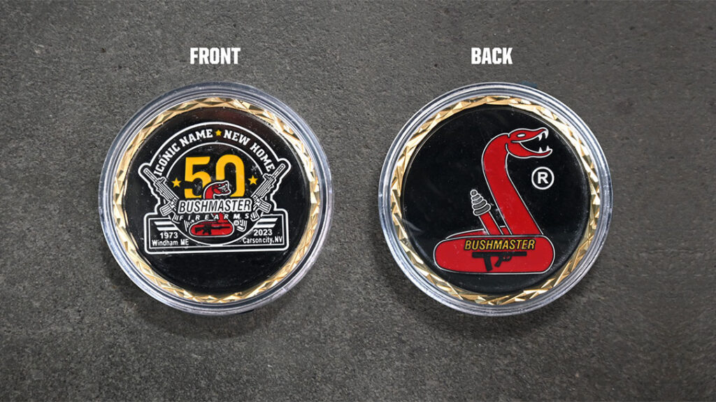 Available in a limited run of only 50 to ever be made, the magwell displays the 50th Anniversary Gold emblem. Likewise, each rifle comes with a certificate of authenticity, including the rifle’s serial number. In addition, a serialized challenge coin also accompanies the rifle. Each coin features a unique serial number that matches the serial number of the rifle and is sealed in an archival coin case.
