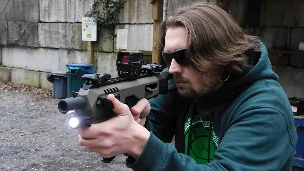 The MCK is a chassis system that essentially turns your pistol into a small carbine. Cool features abound, and after initially thinking it was a gimmick, I’ve come to really like my MCK. It’s certainly fun, but it has some practical applications, too. I find myself using it more than I thought I would.
