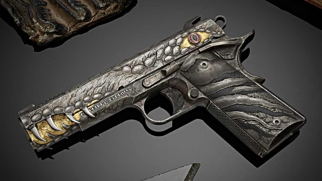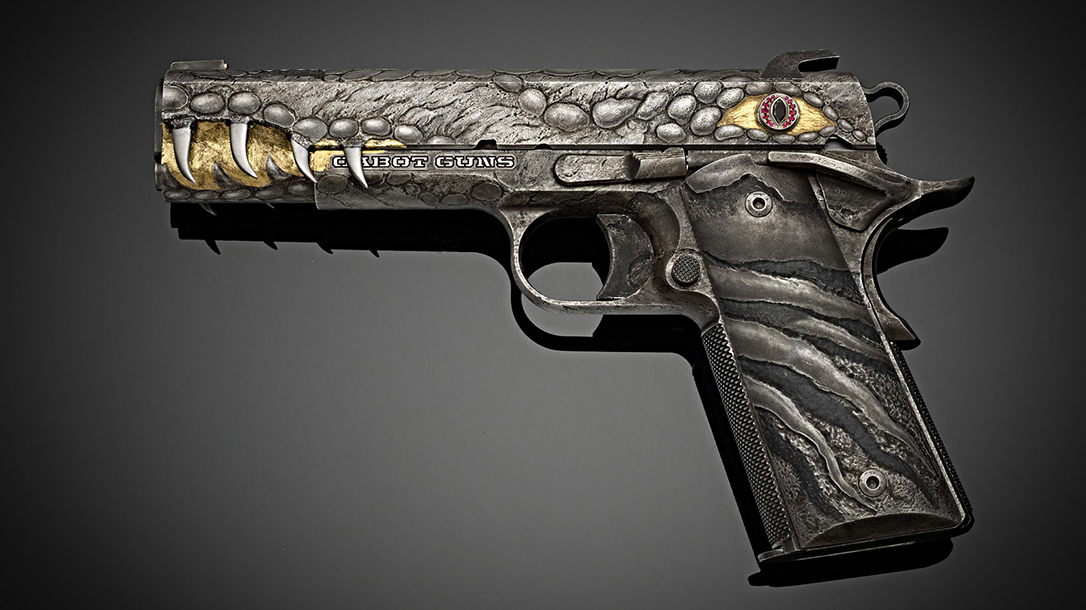 When Cabot Guns built a 1911 from an actual meteor, well, we though we’d seen it all. Aside from the absurdity of such a thing, the pistol itself proved exquisite in every detail. It was surely a pistol never to be topped again. Now Cabot is back with another groundbreaking design, the Dragon Fire. A shocking blend of master engraving and creativity, the Dragon Fire redefines high-end 1911, all over again.
