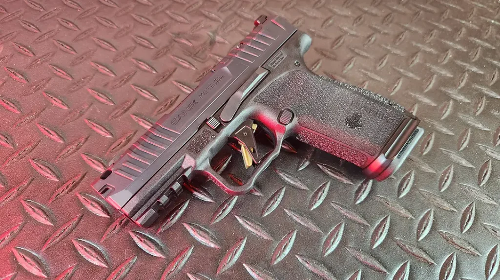 The Canik Mete MC9 Prime is a refined iteration of the original MC9. The “Prime” model takes what was already a well-loved pistol and improves its aesthetics and functionality. The first thing shooters will notice about the MC9 Prime is its upgraded design. While the original Mete MC9 was already sleek and ergonomic, the Prime variant adds subtle visual enhancements. The premium Cerakote finish, accent colors, and laser-engraved slide patterns make it one of the most attractive subcompacts on the market. The gold accent on the trigger is a nice addition.