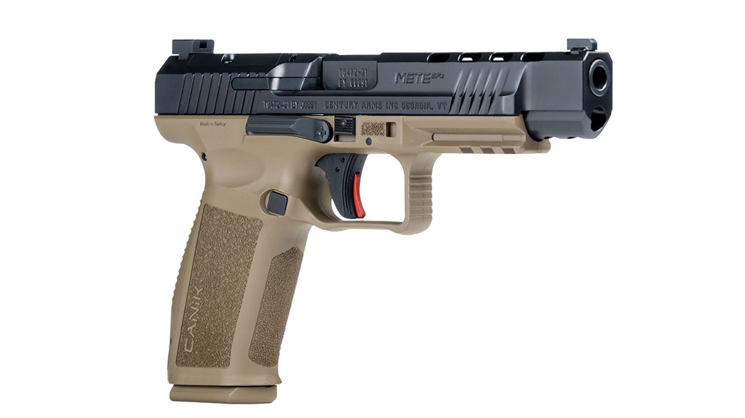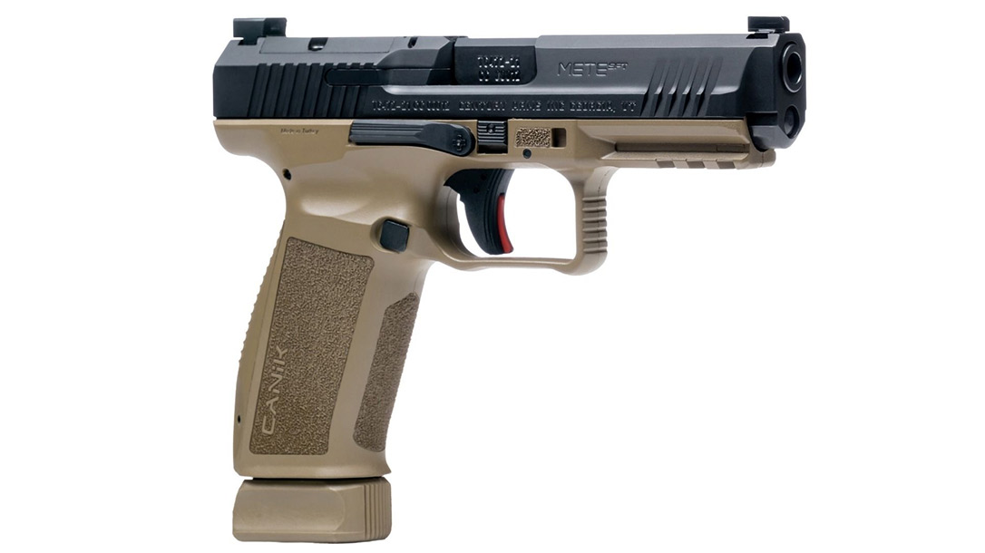 Based near the Turkish mountain bearing its name, Canik has been a significant player in the aerospace defense industry for 22 years, 12 of which as a significant firearms manufacturer. The new METE series incorporates changes, like an integrally flared mag-well, aggressive texturing, a double undercut trigger guard, a low-profile slide stop lever, and angled rear sight.
