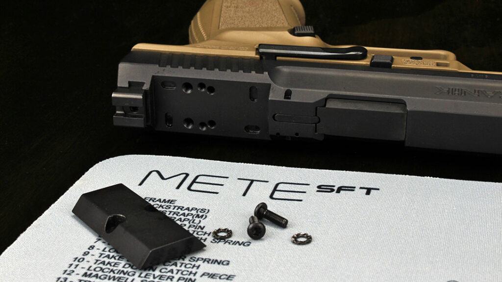 Like all handguns, the frame is only half of the story. The slide on the METE has its improvements too. First and foremost, it comes optics-ready, and one does not have to sacrifice iron sights to install a red dot.