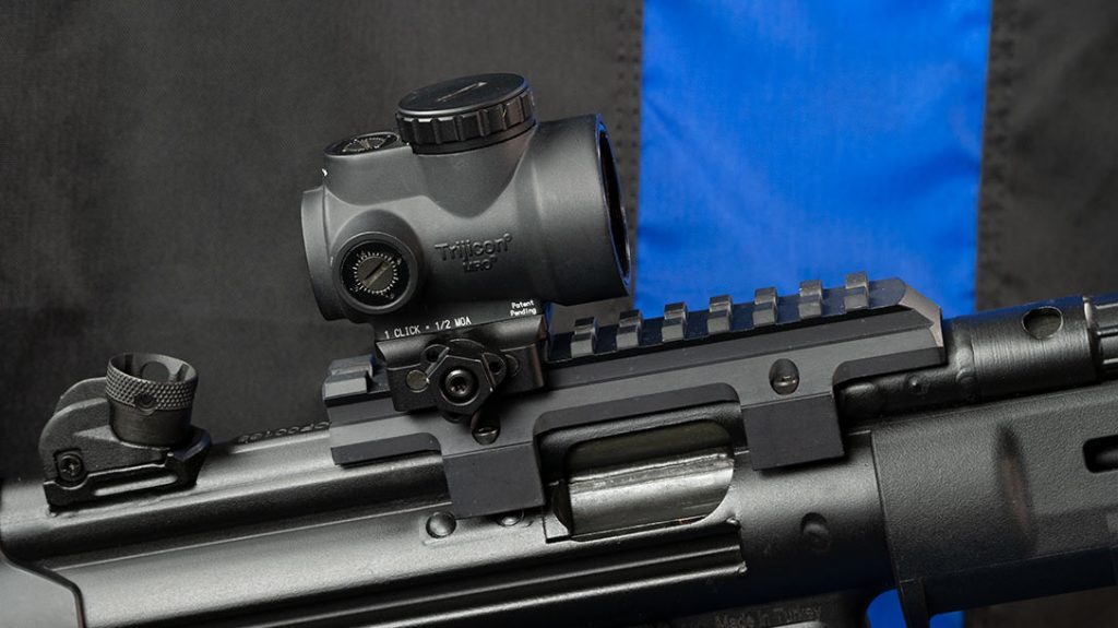 When it comes to a quality red dot, there are many out on the market that will do you just fine. However, as soon as I got the green light on this project, I envisioned a Trijicon MRO on top of the AP5. It’s in a low mount and fits nicely. The only negative is that I’d say the shooter cannot use the iron sights properly.
