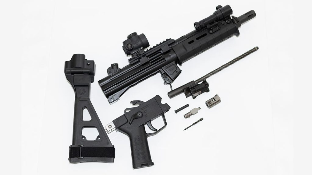 Or you can beg for your rights back and SBR it once you get your “approval,” enabling you to “legally” install a stock. Fair to mention, Magpul is also offering a pistol brace for the AP5 family of firearms.
