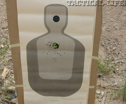 Part Two of the first range session involved advancing to the 25-yard line for some snap shooting and ready-up drills, where I held the G1 at the ready position with a full magazine, a round in the chamber and the safety off. On command, I quickly raised the G1 and fired one round the split second that the front sight was lined up on the upper chest area of a TQ19 Police Firearms Qualification Target. As the test target reveals, I was able to keep my rounds on target each and every time I fired. The really fun part of this exercise came when I conducted fast-fire drills and I fired multiple strings of bullets in a true CQB-style session of engaging a man-size target.