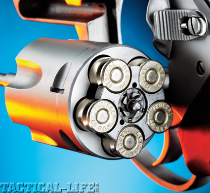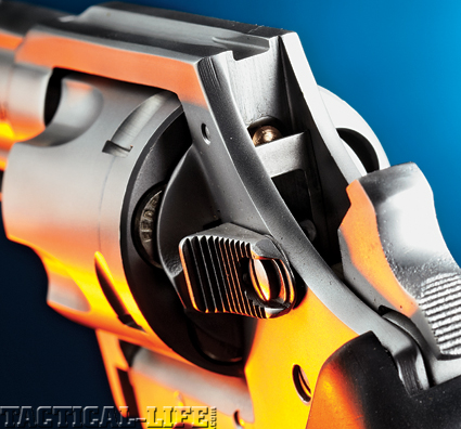 Based on the same medium-size frame as the original Bulldog, the Pitbull will be another innovative revolver as it is being chambered for the .40 S&W cartridge, a round that since 1990 has taken the law enforcement and self-defense markets by storm. While the .40 S&W is a rimless cartridge meant for self-loaders, the Pitbull is not the first wheelgun to chamber such a cartridge as Colt and Smith & Wesson made their large-frame revolvers in .45 ACP for the military in WWI. These and some subsequent revolvers that chambered rimless rounds have generally used half-moon, full-moon and even quarter-moon clips that snap on the cartridge rims to assure proper head-spacing and spent case extraction. What sets the Pitbull apart from some of the older designs is that it will be able to chamber, extract and eject the .40 S&W cartridge sans a clip of any kind.