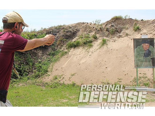 My average time for this drill was 7.33 seconds, and my total score included 15 incapacitating hits, five non-incapacitating hits and no misses. Shots that hit steel parts of the “gun” on the target were counted as non-incapacitating hits. They would have taken the gun out of the equation, but the target could still probably have drawn a backup gun or knife.