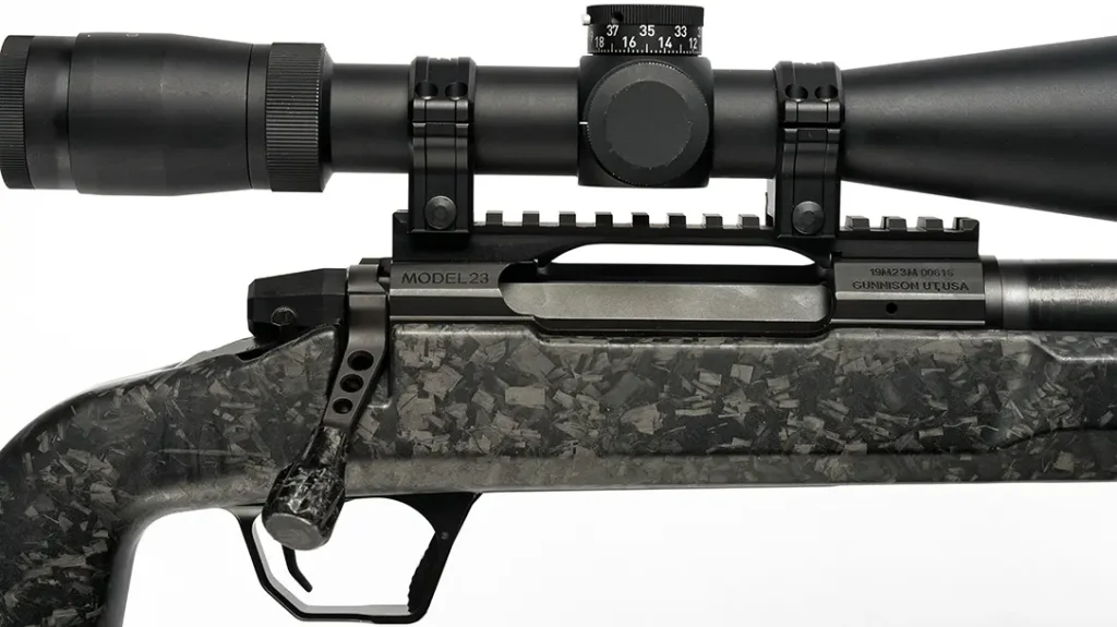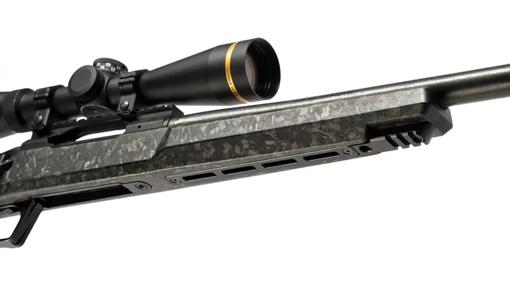 Christensen Arms was founded by an engineer who worked in the aerospace industry. He didn’t start out as a genius at designing guns, but he was a genius at using other people’s designs and combining them with space age alloys and revolutionary technology to make incredible rifles. The MCR has the tried-and-true Remington 700-style stainless steel action, but it is mated to a hand-lapped, free-floated, carbon-fiber wrapped barrel. Sidenote: Christensen Arms was the very first company to carbon-fiber wrap barrels, even if a lot of other companies have gotten more famous doing it. The barrel and action are fitted into a Flash Forged Technology (FFT) carbon-fiber stock. FFT is an advanced type of carbon-fiber that is lighter than traditional carbon-fiber, but 100% dependable for stiffness and holding zero. It also has a push-button cheek riser.