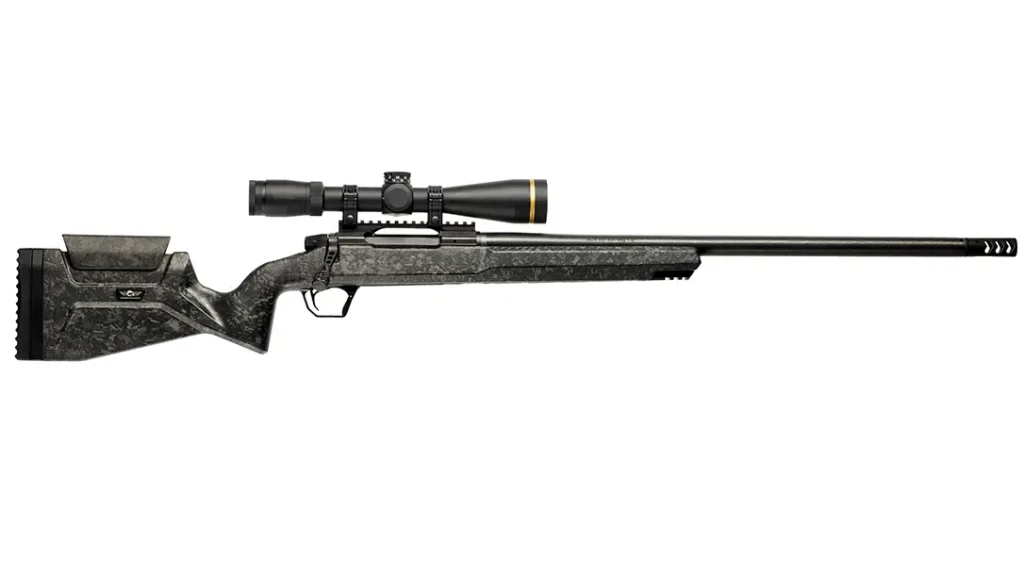 Christensen Arms was founded by an engineer who worked in the aerospace industry. He didn’t start out as a genius at designing guns, but he was a genius at using other people’s designs and combining them with space age alloys and revolutionary technology to make incredible rifles. The MCR has the tried-and-true Remington 700-style stainless steel action, but it is mated to a hand-lapped, free-floated, carbon-fiber wrapped barrel. Sidenote: Christensen Arms was the very first company to carbon-fiber wrap barrels, even if a lot of other companies have gotten more famous doing it. The barrel and action are fitted into a Flash Forged Technology (FFT) carbon-fiber stock. FFT is an advanced type of carbon-fiber that is lighter than traditional carbon-fiber, but 100% dependable for stiffness and holding zero. It also has a push-button cheek riser.