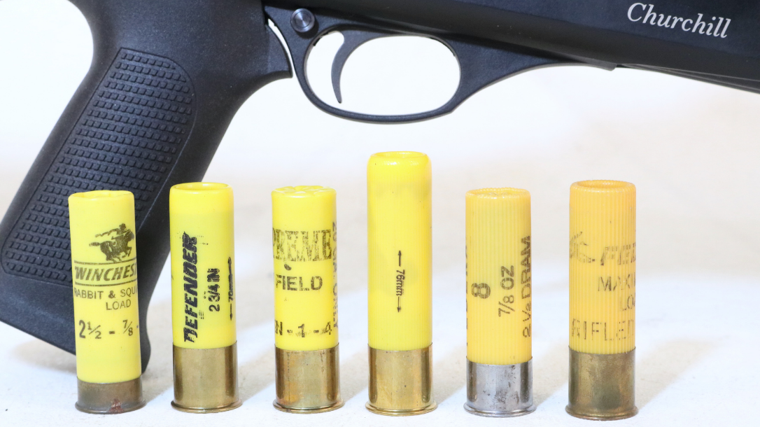 Like most autoloading shotguns, the Churchill 220 prefers high brass slugs, buckshot and turkey loads. However, I left the bolt locked to the rear for a few days and it loosened up enough to cycle cheap birdshot as well. The gun just needs to be broken in a bit. At close ranges said birdshot will explode a water-filled milk jug like a hand grenade.