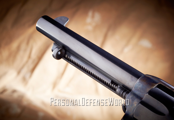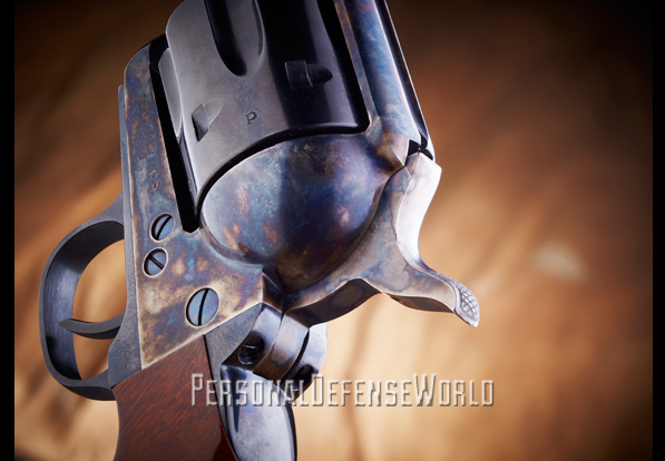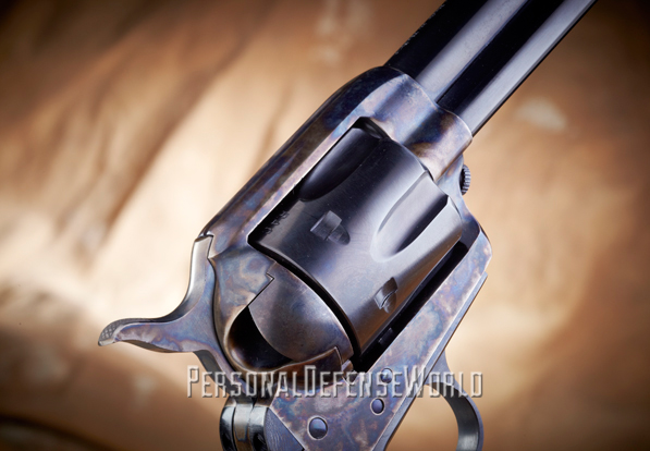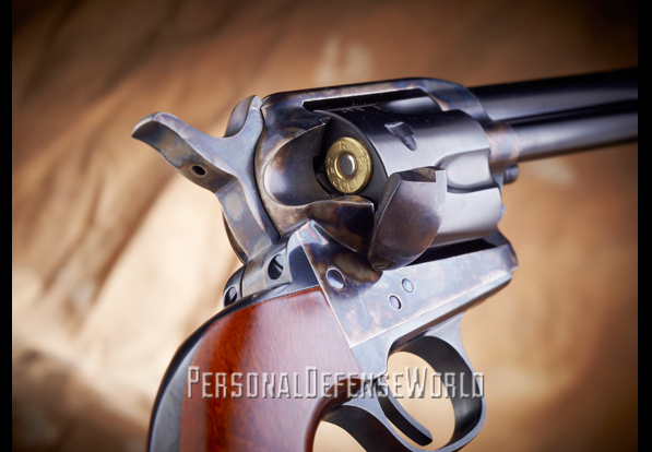 In 1882, the U.S. military adopted what was at the time a high-tech weapon in the latest, greatest caliber—the Colt double-action revolver with a swing-out cylinder in .38 Long Colt (LC). It took two wars for the U.S. government to realize the ballistic deficiency of the .38 LC cartridge. The boots on the ground had a shorter learning curve. Numerous accounts told of enemy combatants who were shot several times in vital areas with the anemic .38 LC only to keep fighting. Troops were dissatisfied with the .38 LC cartridge’s performance. The military’s quick-fix solution was to bring back the Colt Single Action Army (SAA) revolver in .45 Long Colt (LC). The Cimarron USV Artillery recreates these storied Colt SAAs that brought firepower back into the hands of U.S. troops at the turn of the 20th century.
