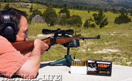 The rear part of the test rifle’s forend showed some compression, especially on one side. I carefully filed the compressed areas, then replaced the forend, tightening the screw firmly but not “farmer tight.” After mounting the scope, I gathered some factory loads and headed for the range on a calm, cool morning in early July.