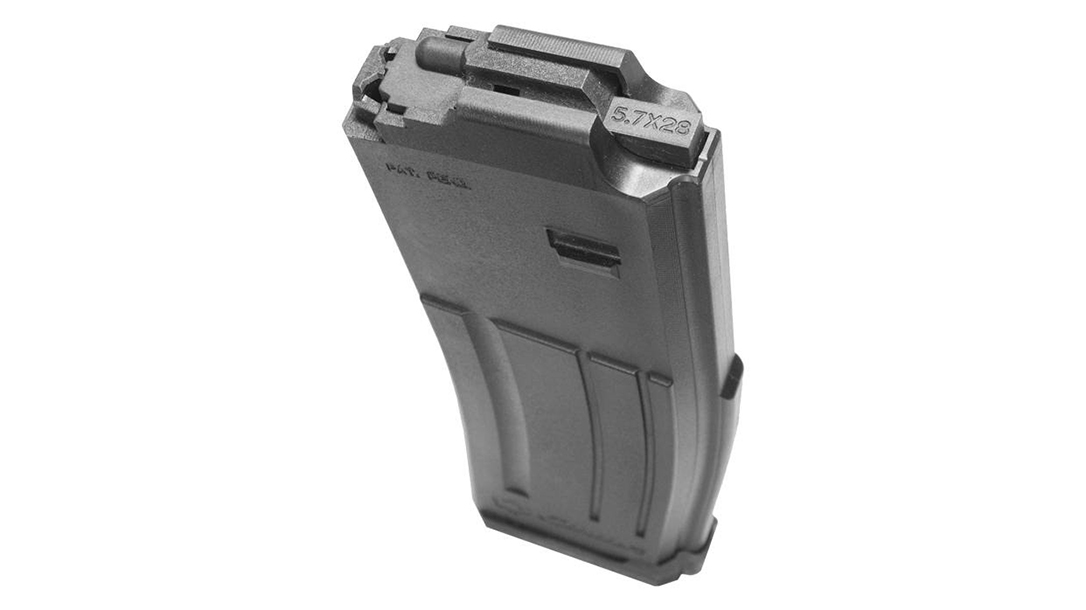 The sudden resurgence of the 5.7x28mm cartridge got another boost with the recent announcement by CMMG of its new 5.7 AR Conversion Magazine. The CMMG 5.7 AR Conversion Magazine holds 40 rounds of 5.7x28mm. It fits and functions within a standard mil-spec AR-15 lower. The magazine pairs with CMMG’s 5.7x28mm Radial Delayed Blowback upper receiver.