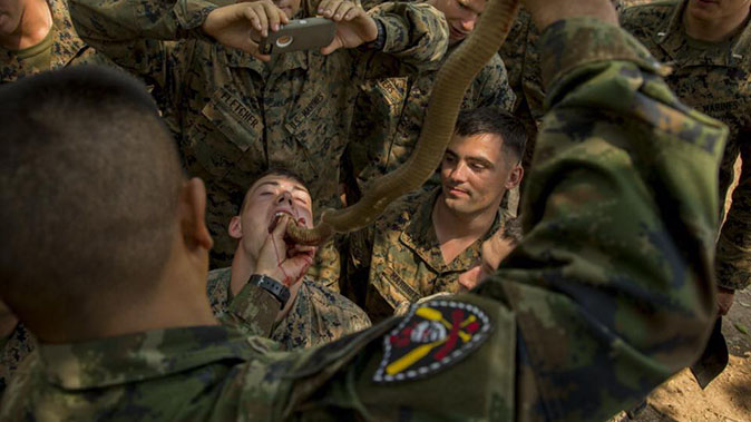 U.S. service members drank cobra blood, ate scorpions, tarantulas and geckos, and cooked rats during the annual Cobra Gold military training exercise currently taking place in Thailand. If you dare, check out the photos above and watch a quick video of the event below.