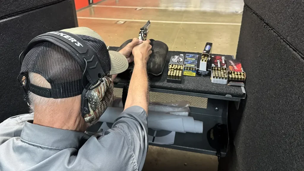 From the get-go, I decided there would be no .38 Special loads in this T&E and I was going for some of the best “Bear Cartridges” that I could find. Given their penchant for penetration and energy dump within the target, my first selection was Black Hills Honey Badger. Its solid copper bullet has an X-nose and flutes that give it a whirling/tearing effect as it buries deep inside the animated target. Next was the Heavy Outdoorsman load from Buffalo Bore. It has a 180-grain hard cast, lead flat-point (HC-LFP) bullet, with a copper gas-check (GC). Then there’s the Doubletap load; it has a 200-grain HC-LFP bullet. A lighter, but effective load, was Federal’s American Eagle, with a 158-grain JSP bullet. To top it off was the “Bear Load” from Hunting Shack Munitions (HSM), with a 180-grain HC LFP GC bullet.