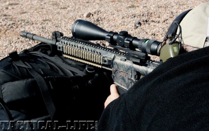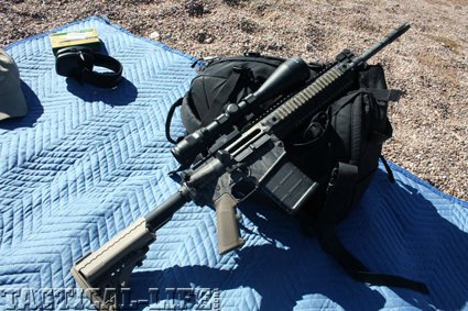 Numerous firearms industry media folks were on hand for the live fire demonstration. A Trijicon high-powered riflescope allowed shooters to make hits on popper targets out to three hundred yards with ease.