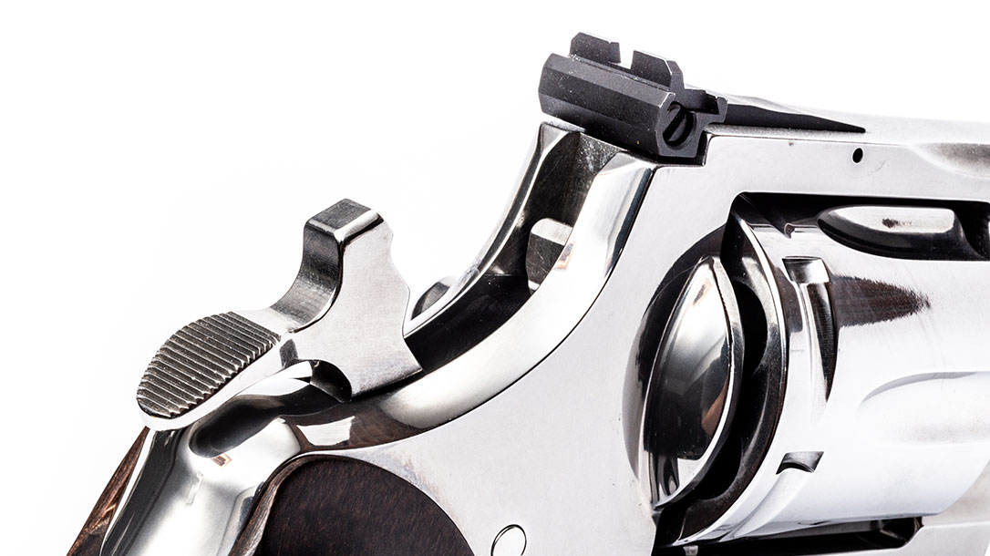 Strength and durability were critical foundations of the new revolver. For this reason, Colt claims the new Python is machined from stronger stainless-steel alloys. Likewise, it boasts a new rear sight design, allowing for a 30-percent increase in the thickness of the top strap. This adds strength to the frame, as well as recoil-absorbing weight.