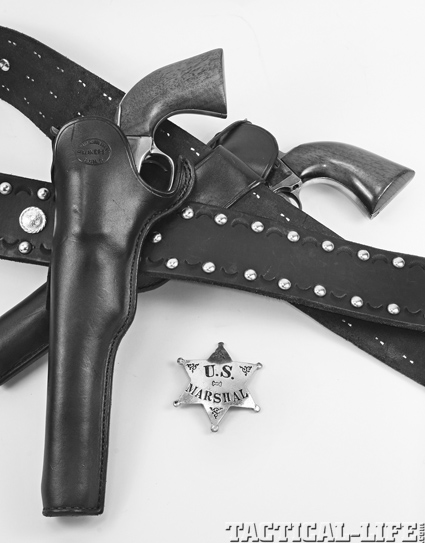 The top is a deep “S” curve that rises high enough at the top of the curve to protect the caps. The toe has a sewn-in plug with a vent hole. I had my holsters made with a slight cant for a butt forward carry. I use a cavalry-style draw, also known as a twist draw for my 1851s. It tends to freak out Cowboy Action Shooting (CAS) range officers, but I love that draw. It is fast and safe if you know what you’re doing.