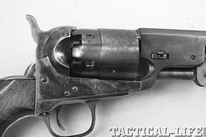 These days when we think of combat handgunning, we think in terms of distances from 7 to 25 yards. But when the 1851 Navy was developed they were sighted in for 75 yards. There are people who doubt that you can effectively shoot a gun with such crude sights at that distance. But back in the early ‘70s when I started shooting Navy cap-and-ball revolvers, one of my favorite targets was an old 55-gallon drum. I’d sit on the rim of a big gravel pit and shoot at it down in the pit, over 100 yards away. I loved hearing those round balls go “bong” when they hit that empty drum. I didn’t miss much.
